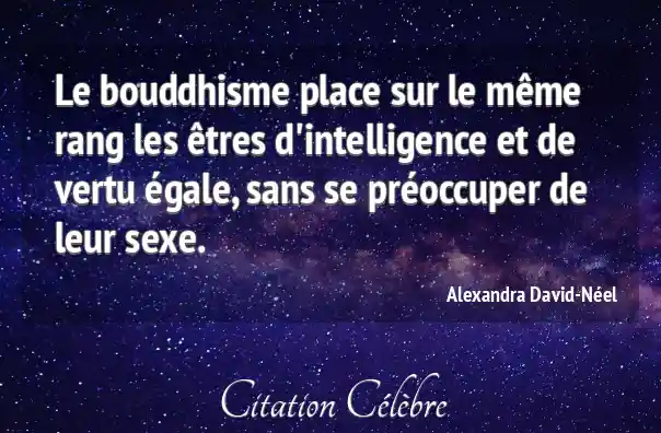 Le bouddhisme place sur le même rang les êtres d'intelligence et de vertu égale, sans se préoccuper de leur sexe.