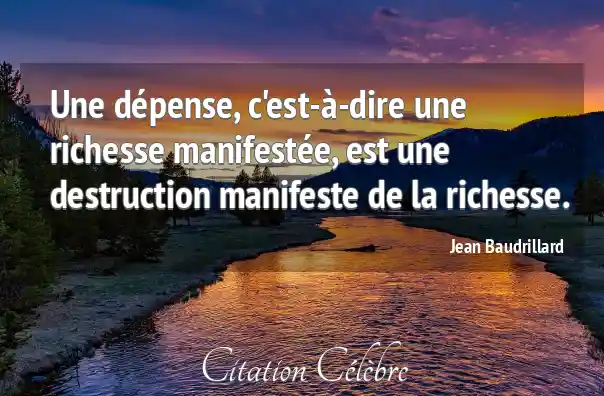 Une dépense, c'est-à-dire une richesse manifestée, est une destruction manifeste de la richesse.