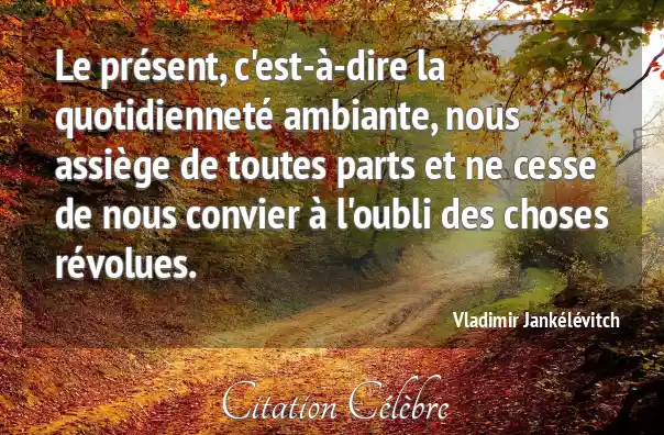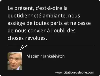 Le présent, c'est-à-dire la quotidienneté ambiante, nous assiège de toutes parts et ne cesse de nous convier à l'oubli des choses révolues.