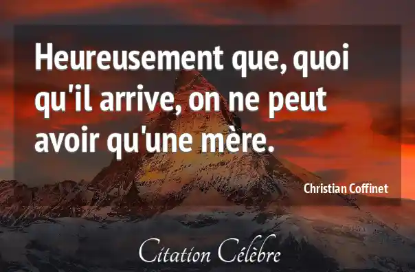 Heureusement que, quoi qu'il arrive, on ne peut avoir qu'une mère.