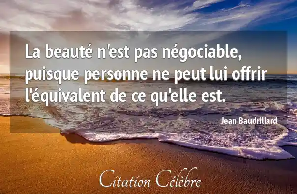 La beauté n'est pas négociable, puisque personne ne peut lui offrir l'équivalent de ce qu'elle est.