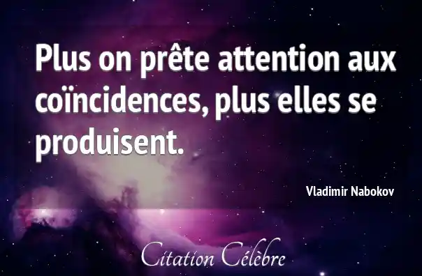 Citation Vladimir Nabokov elles : Plus on prête attention aux coïncidences, plus elles se produisent....