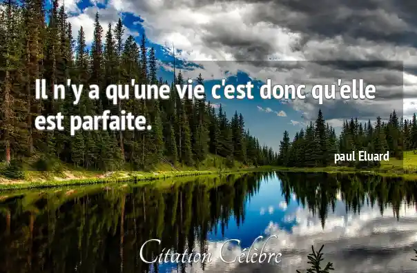 Il n'y a qu'une vie c'est donc qu'elle est parfaite.