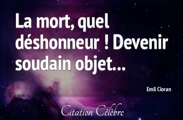 La mort, quel déshonneur ! Devenir soudain objet...