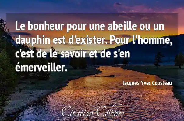 Le bonheur pour une abeille ou un dauphin est d'exister. Pour l'homme, c'est de le savoir et de s'en émerveiller.