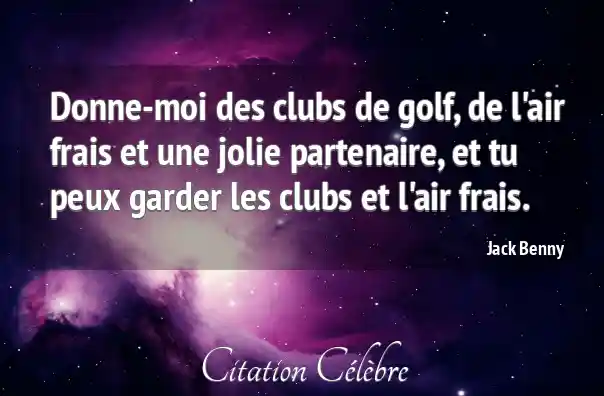 Donne-moi des clubs de golf, de l'air frais et une jolie partenaire, et tu peux garder les clubs et l'air frais.
