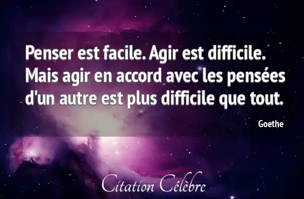 Penser est facile. Agir est difficile. Mais agir en accord avec les pensées d'un autre est plus difficile que tout.