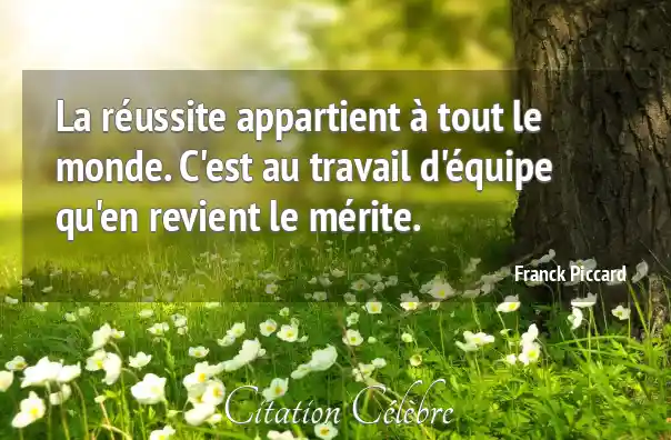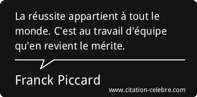 La réussite appartient à tout le monde. C'est au travail d'équipe qu'en revient le mérite.