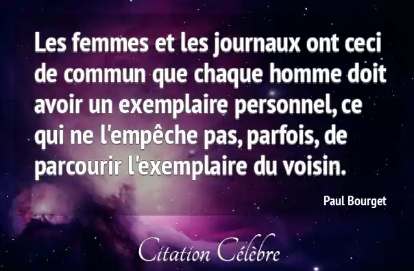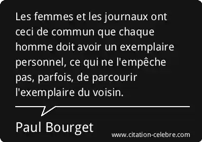 Les femmes et les journaux ont ceci de commun que chaque homme doit avoir un exemplaire personnel, ce qui ne l'empêche pas, parfois, de parcourir l'exemplaire du voisin.