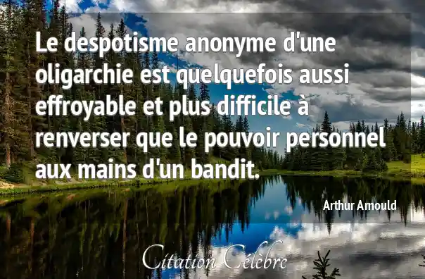 Le despotisme anonyme d'une oligarchie est quelquefois aussi effroyable et plus difficile à renverser que le pouvoir personnel aux mains d'un bandit.