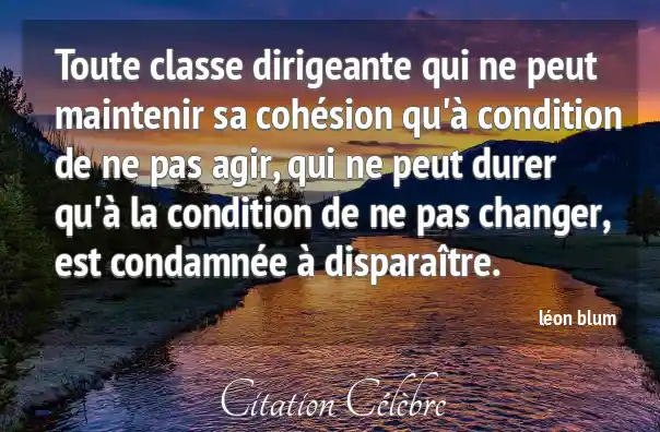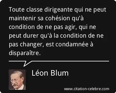 Toute classe dirigeante qui ne peut maintenir sa cohésion qu'à condition de ne pas agir, qui ne peut durer qu'à la condition de ne pas changer, est condamnée à disparaître.