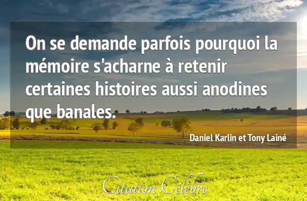 On se demande parfois pourquoi la mémoire s'acharne à retenir certaines histoires aussi anodines que banales.