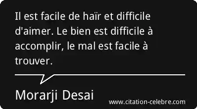 Il est facile de haïr et difficile d'aimer. Le bien est difficile à accomplir, le mal est facile à trouver.