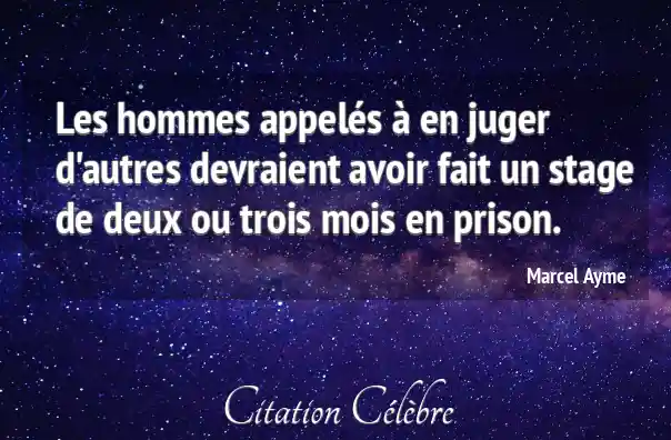 Citation Marcel Aymé avoir : Les hommes appelés à en juger d'autres devraient avoir fait...