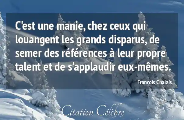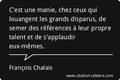 C'est une manie, chez ceux qui louangent les grands disparus, de semer des références à leur propre talent et de s'applaudir eux-mêmes.