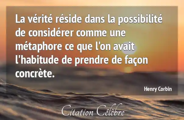 La vérité réside dans la possibilité de considérer comme une métaphore ce que l'on avait l'habitude de prendre de façon concrète.
