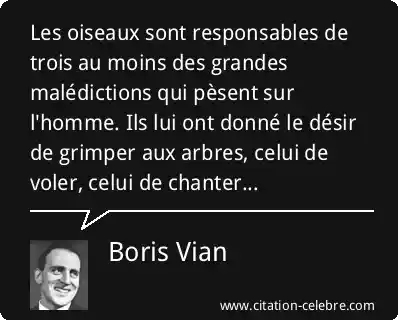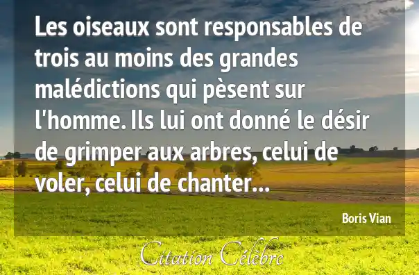 Les oiseaux sont responsables de trois au moins des grandes malédictions qui pèsent sur l'homme. Ils lui ont donné le désir de grimper aux arbres, celui de voler, celui de chanter...