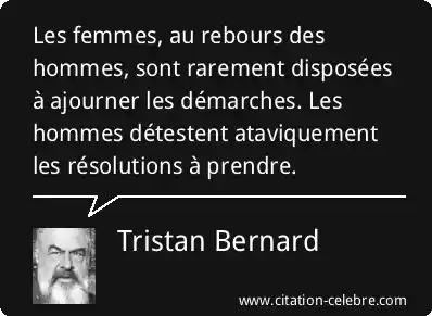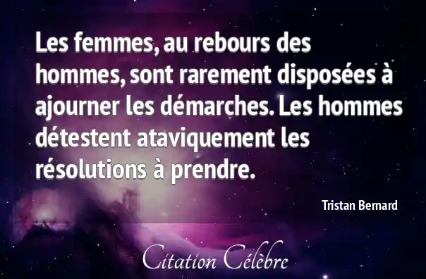 Les femmes, au rebours des hommes, sont rarement disposées à ajourner les démarches. Les hommes détestent ataviquement les résolutions à prendre.