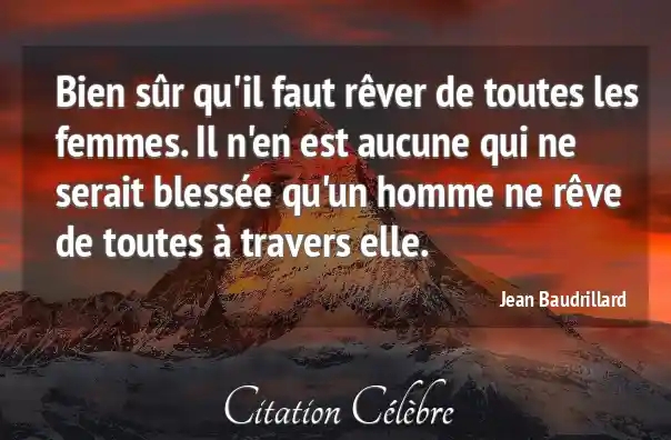 Bien sûr qu'il faut rêver de toutes les femmes. Il n'en est aucune qui ne serait blessée qu'un homme ne rêve de toutes à travers elle.