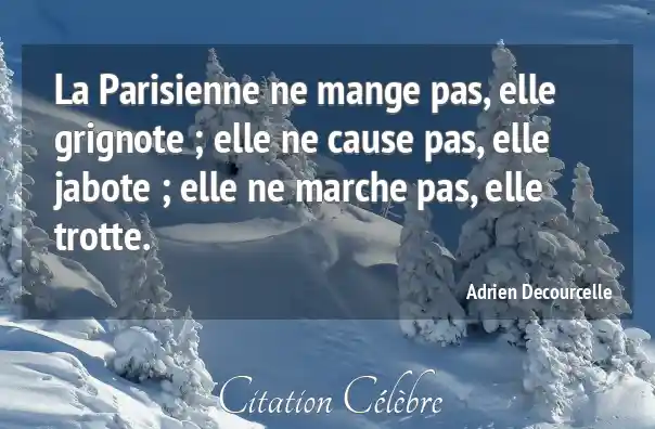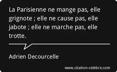 La Parisienne ne mange pas, elle grignote ; elle ne cause pas, elle jabote ; elle ne marche pas, elle trotte.