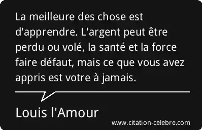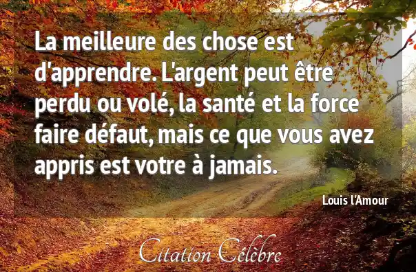 La meilleure des chose est d'apprendre. L'argent peut être perdu ou volé, la santé et la force faire défaut, mais ce que vous avez appris est votre à jamais.