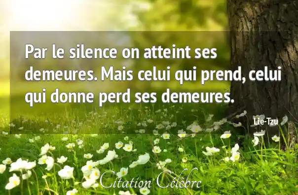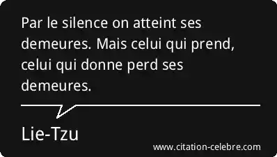 Par le silence on atteint ses demeures. Mais celui qui prend, celui qui donne perd ses demeures.