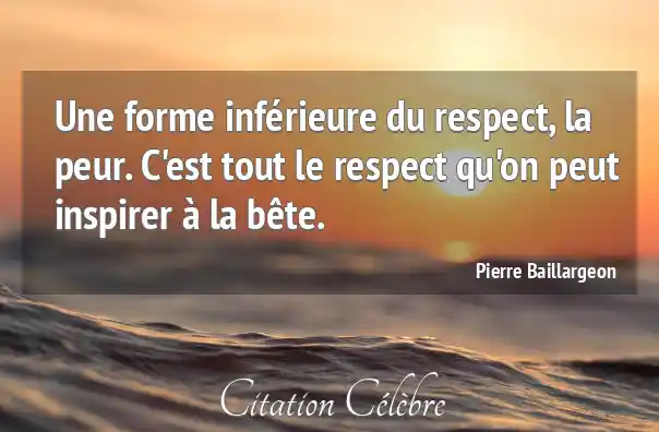 Une forme inférieure du respect, la peur. C'est tout le respect qu'on peut inspirer à la bête.