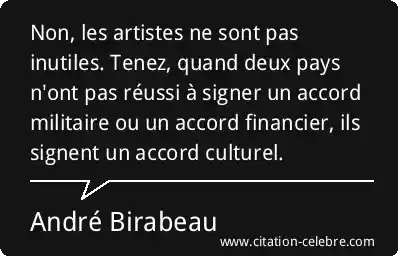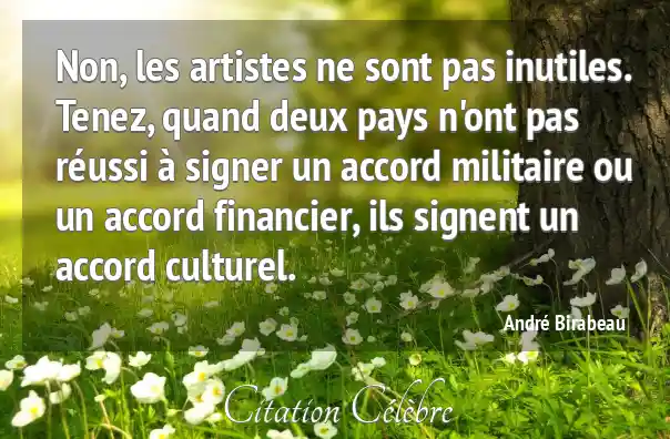 Non, les artistes ne sont pas inutiles. Tenez, quand deux pays n'ont pas réussi à signer un accord militaire ou un accord financier, ils signent un accord culturel.