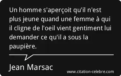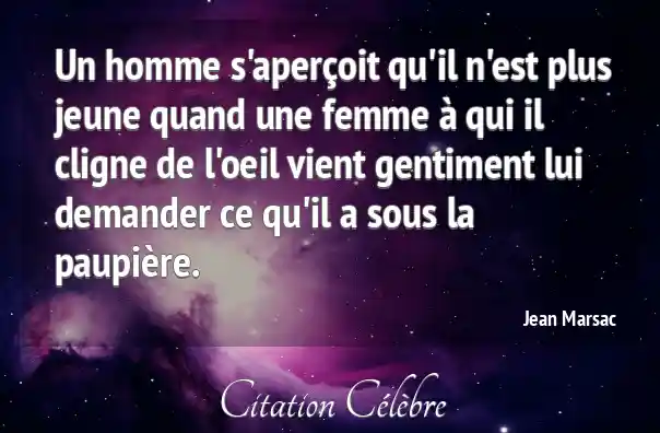 Un homme s'aperçoit qu'il n'est plus jeune quand une femme à qui il cligne de l'oeil vient gentiment lui demander ce qu'il a sous la paupière.