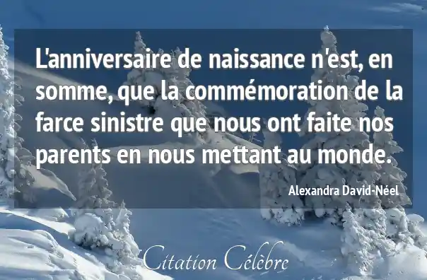 L'anniversaire de naissance n'est, en somme, que la commémoration de la farce sinistre que nous ont faite nos parents en nous mettant au monde.