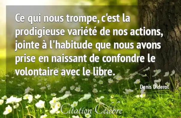 Ce qui nous trompe, c'est la prodigieuse variété de nos actions, jointe à l'habitude que nous avons prise en naissant de confondre le volontaire avec le libre.