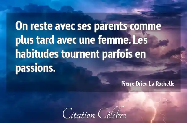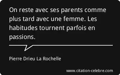 On reste avec ses parents comme plus tard avec une femme. Les habitudes tournent parfois en passions.