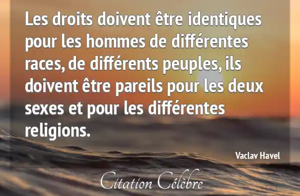 Les droits doivent être identiques pour les hommes de différentes races, de différents peuples, ils doivent être pareils pour les deux sexes et pour les différentes religions.