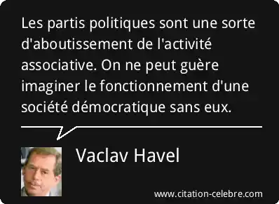 Les partis politiques sont une sorte d'aboutissement de l'activité associative. On ne peut guère imaginer le fonctionnement d'une société démocratique sans eux.