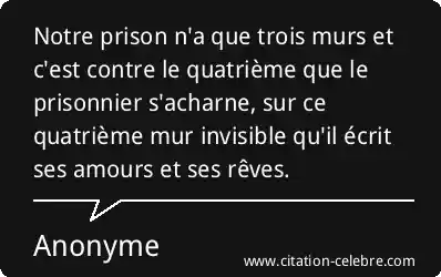 Notre prison n'a que trois murs et c'est contre le quatrième que le prisonnier s'acharne, sur ce quatrième mur invisible qu'il écrit ses amours et ses rêves.