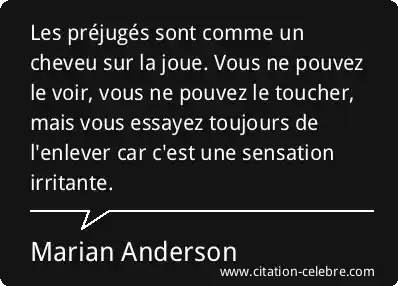 Les préjugés sont comme un cheveu sur la joue. Vous ne pouvez le voir, vous ne pouvez le toucher, mais vous essayez toujours de l'enlever car c'est une sensation irritante.