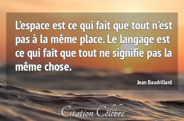 L'espace est ce qui fait que tout n'est pas à la même place. Le langage est ce qui fait que tout ne signifie pas la même chose.