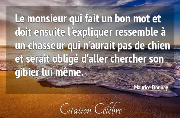 Le monsieur qui fait un bon mot et doit ensuite l'expliquer ressemble à un chasseur qui n'aurait pas de chien et serait obligé d'aller chercher son gibier lui même.
