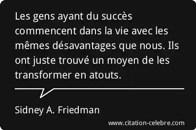 Les gens ayant du succès commencent dans la vie avec les mêmes désavantages que nous. Ils ont juste trouvé un moyen de les transformer en atouts.