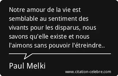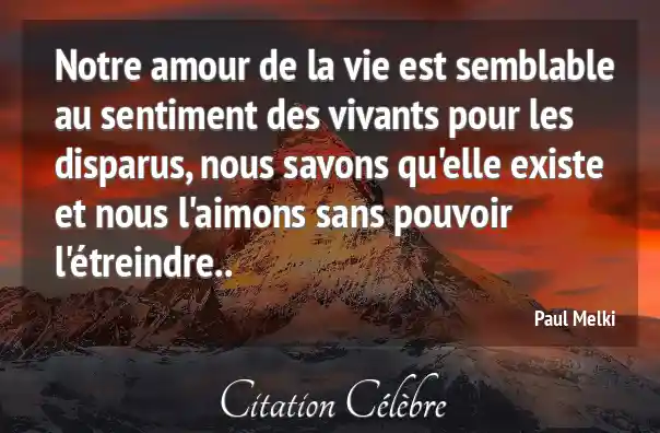 Notre amour de la vie est semblable au sentiment des vivants pour les disparus, nous savons qu'elle existe et nous l'aimons sans pouvoir l'étreindre..