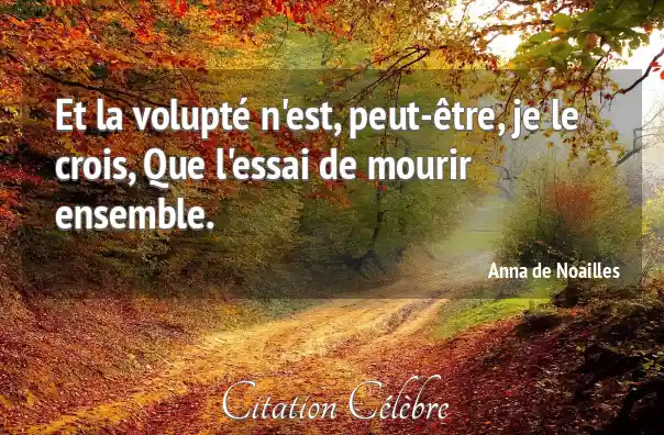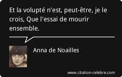 Et la volupté n'est, peut-être, je le crois, Que l'essai de mourir ensemble.