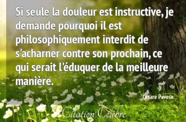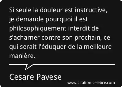 Si seule la douleur est instructive, je demande pourquoi il est philosophiquement interdit de s'acharner contre son prochain, ce qui serait l'éduquer de la meilleure manière.