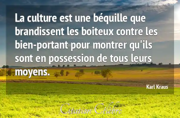 La culture est une béquille que brandissent les boiteux contre les bien-portant pour montrer qu'ils sont en possession de tous leurs moyens.