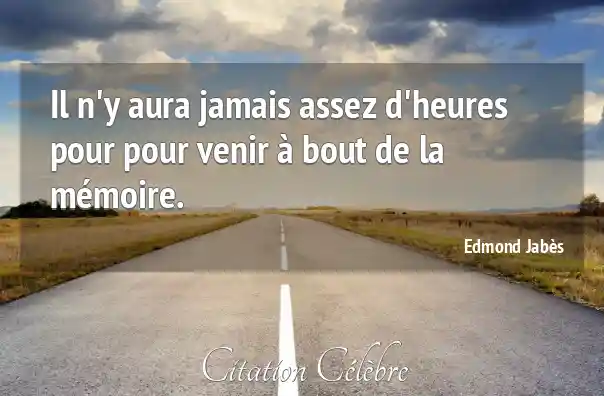 Il n'y aura jamais assez d'heures pour pour venir à bout de la mémoire.