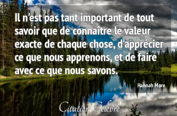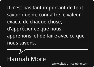 Il n'est pas tant important de tout savoir que de connaître le valeur exacte de chaque chose, d'apprécier ce que nous apprenons, et de faire avec ce que nous savons.