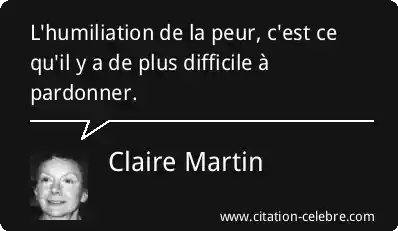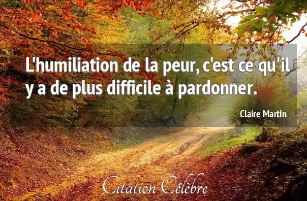 L'humiliation de la peur, c'est ce qu'il y a de plus difficile à pardonner.