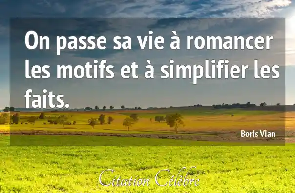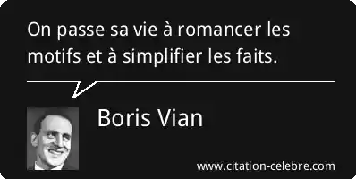 Citation Boris Vian vie : On passe sa vie à romancer les motifs et à...
