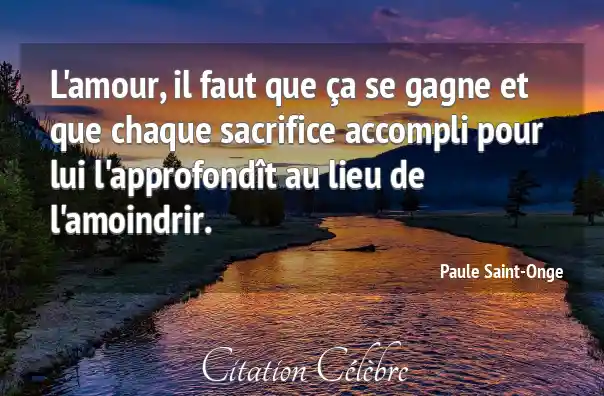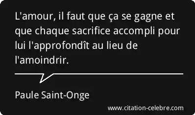 L'amour, il faut que ça se gagne et que chaque sacrifice accompli pour lui l'approfondît au lieu de l'amoindrir.