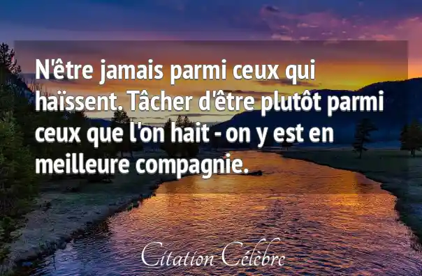 N'être jamais parmi ceux qui haïssent. Tâcher d'être plutôt parmi ceux que l'on hait - on y est en meilleure compagnie.