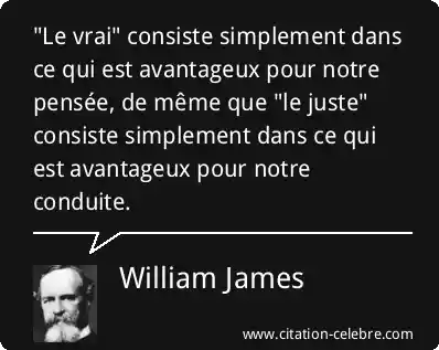 "Le vrai" consiste simplement dans ce qui est avantageux pour notre pensée, de même que "le juste" consiste simplement dans ce qui est avantageux pour notre conduite.